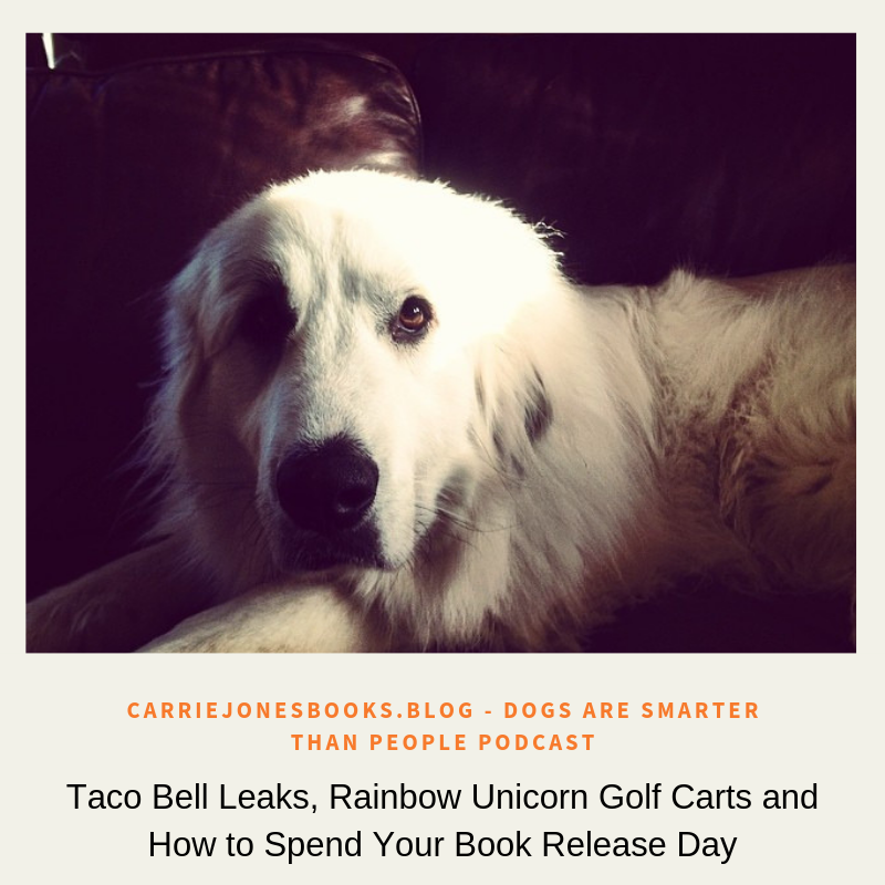 As you’ll hear, Carrie did none of those things. Instead, she ran, made a whiny video from the campground shower stall, had a Taco Bell incident, bought Shaun a new outfit, tried to raise money for ShelterBox and finally got a copy of her own book.